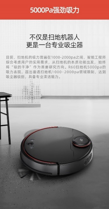 掃地機(jī)器人作為一款智能清潔家電,強(qiáng)大的清潔能力是用戶最本質(zhì)上的需求,而影響清潔能力的關(guān)鍵因素就是吸力。在這方面,小狗擁有沉淀21年的技術(shù)累積,掌握吸塵器三大核心技術(shù)(電機(jī)、風(fēng)道、主控板)。小狗的智能工程師從用戶需求出發(fā),將“吸的干凈”作為首要研究方向,旗艦新品掃地機(jī)器人R60應(yīng)用了吸塵器風(fēng)道技術(shù),吸力拉升至5000Pa,較小狗老款產(chǎn)品吸力大500%。不僅超出市面上常規(guī)的掃地機(jī)器人1000Pa~2000Pa吸力限制一大截,甚至可以達(dá)到專業(yè)吸塵器的級別。內(nèi)置大功率無刷馬達(dá),無動力磨損,且功率翻倍,能瞬間產(chǎn)生并驅(qū)動高達(dá)5000Pa的強(qiáng)勁氣流,哪怕是地板縫隙、地毯深處的污垢,都能一吸而盡。機(jī)器還配備了僅用于高端機(jī)型的浮動滾刷,能緊貼地面,保持吸力不損耗還能實(shí)現(xiàn)深層清潔,以達(dá)到最佳的清潔效果。此外,這款機(jī)型在續(xù)航能力上也有較大突破,6400mAh大容量鋰電池單次續(xù)航高達(dá)4小時,充電一次可持續(xù)清掃面積更大。
